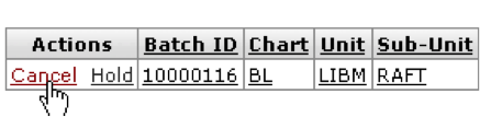 If a batch is currently on hold, follow the steps noted above to remove the hold, but click the remove hold link.