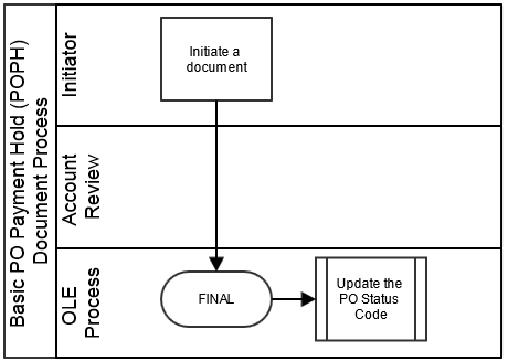 When you put a PO on hold, the system creates a PO Hold (POPH) document, changes the PO status to 'Payment Held,' and prevents any payment request documents from being initiated against the PO. You must enter a reason when initiating the payment hold.