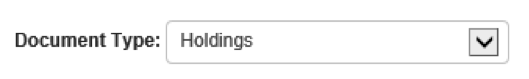 The Global Changes of Holdings or Items process begins by identifying the type of records to be globally edited. First, choose a Document Type from a drop-down list. The choices for a document type are limited to holdings, e-holdings, and items. The default document type is holdings.
